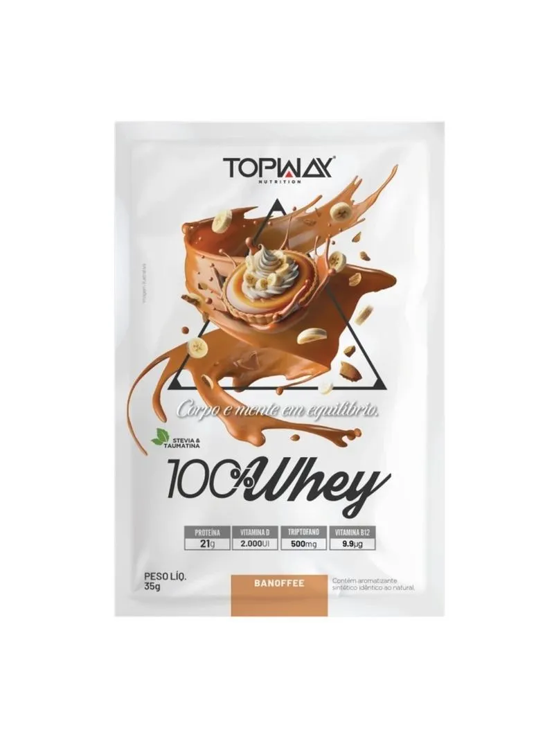 O 100% Whey Topway Nutrition em sachê de 35g oferece uma dose ideal de 21g de proteína de alto valor biológico, essencial para quem busca ganho de massa muscular, recuperação pós-treino e nutrição de qualidade.
